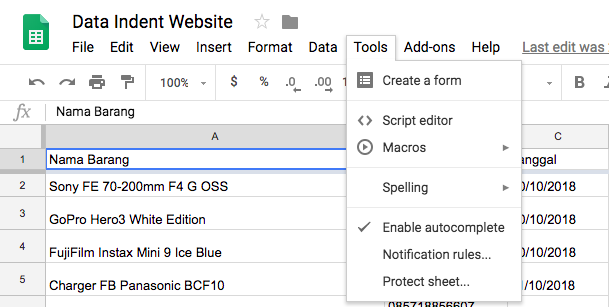 Masukan script / code di bawah ini ke dalam dokumen google sheet mu (copy aja code ini sekarang):